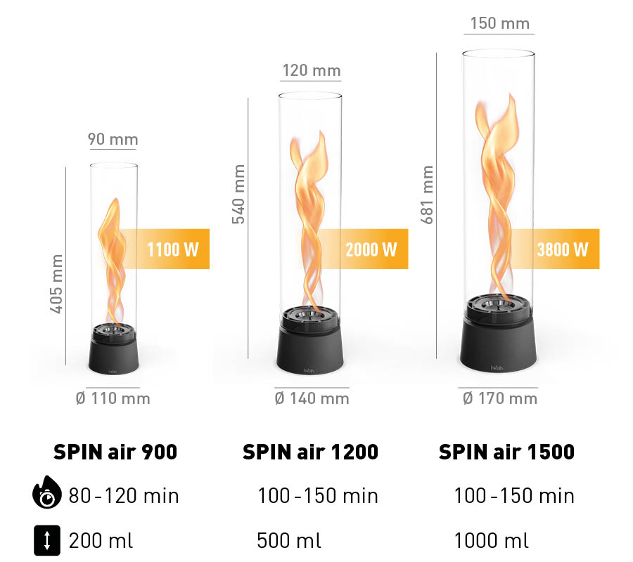 SPIN air - Das ist die Verschmelzung des Ursprünglichen mit der Moderne. Mit höchster Qualität und ausgefallenen Materialien setzt der Flammenwirbel stilvolle Akzente und bringt die Magie des Feuers in deinen kosmopolitischen Lebensstil.