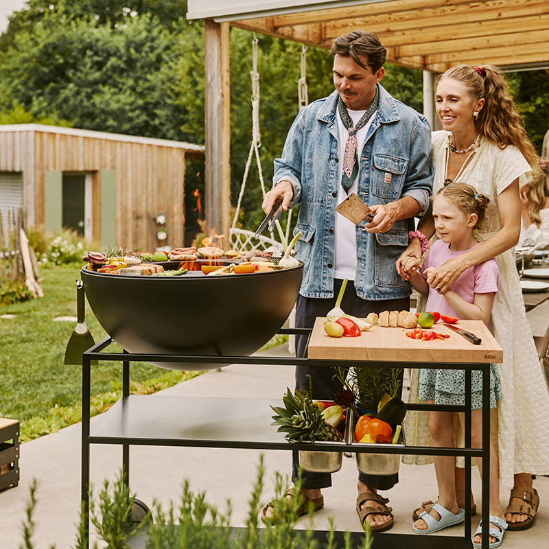 FIRE KITCHEN - the portable outdoor kitchen with integrated barbecue and fire bowl area is the solution for those who enjoy grilling and cooking on a grand scale and out in the open air.