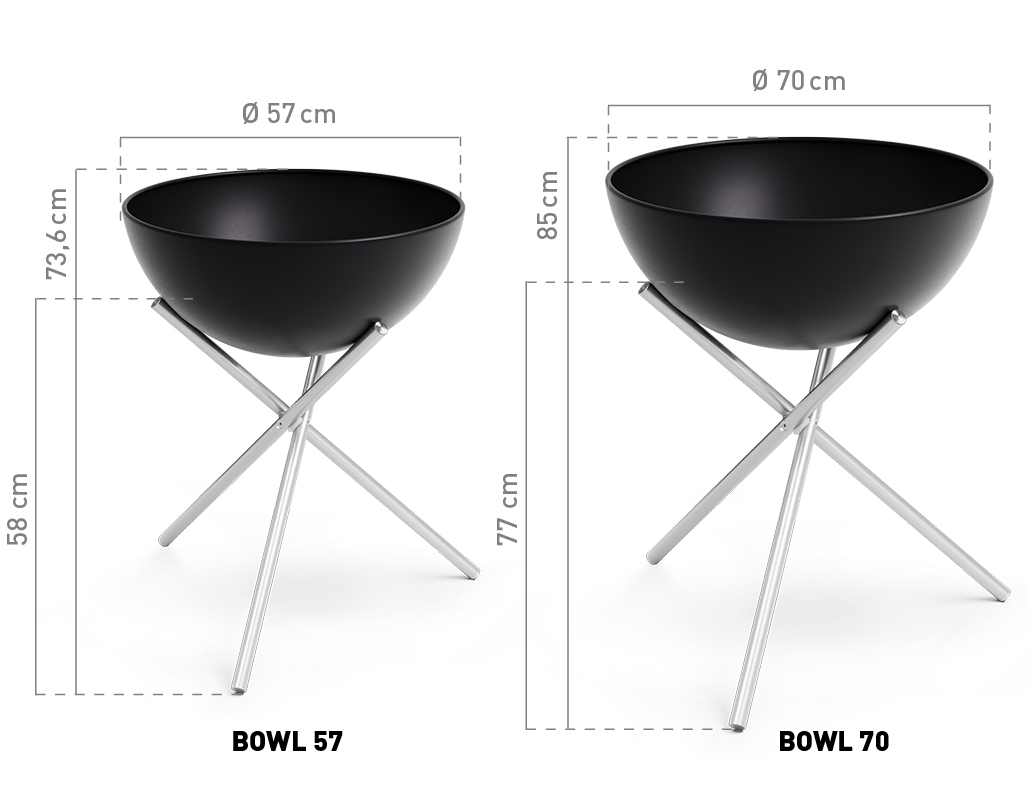 - Scope of delivery: BOWL 57 fire bowl, inner ash tray, tripod