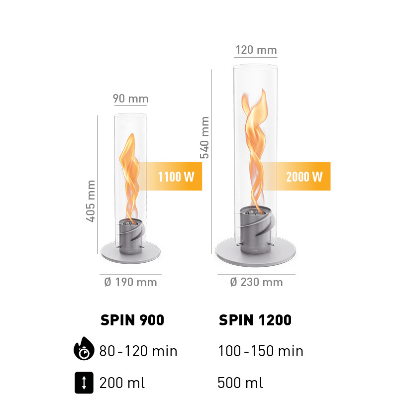 - SPIN 900 can only be operated with bioethanol liquid fuel.