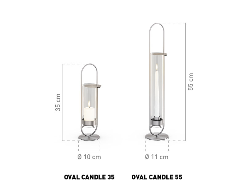 OVAL CANDLE 35 Lantaarn zwart geborsteld